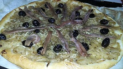 Pizza ou pte brise toute prte ainsi que des oignons surgels dj. Dire avec du pissalat un pte. Pizza des oignons confits.
